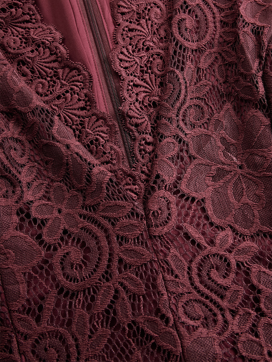 Vintage Bohemian Blue Lace Long Sleeve Midi Dress
